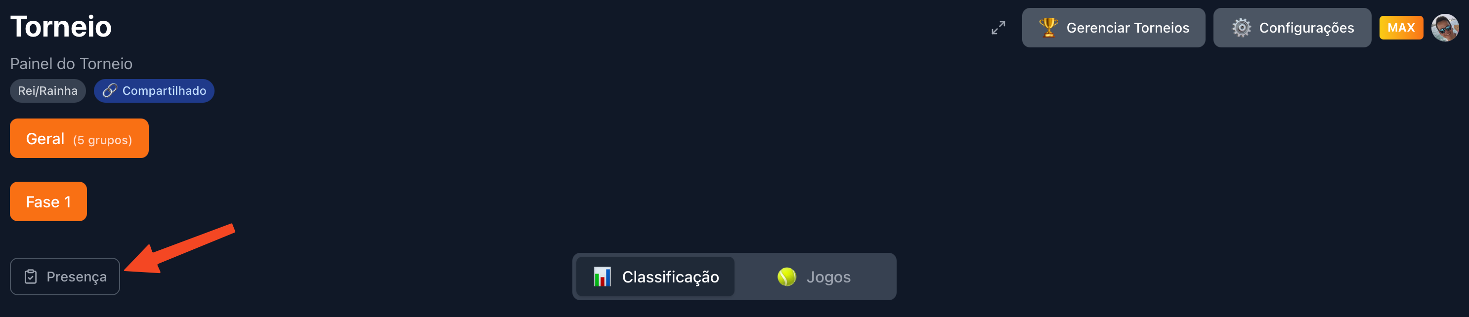 11. Compartilhar o torneio MAX
