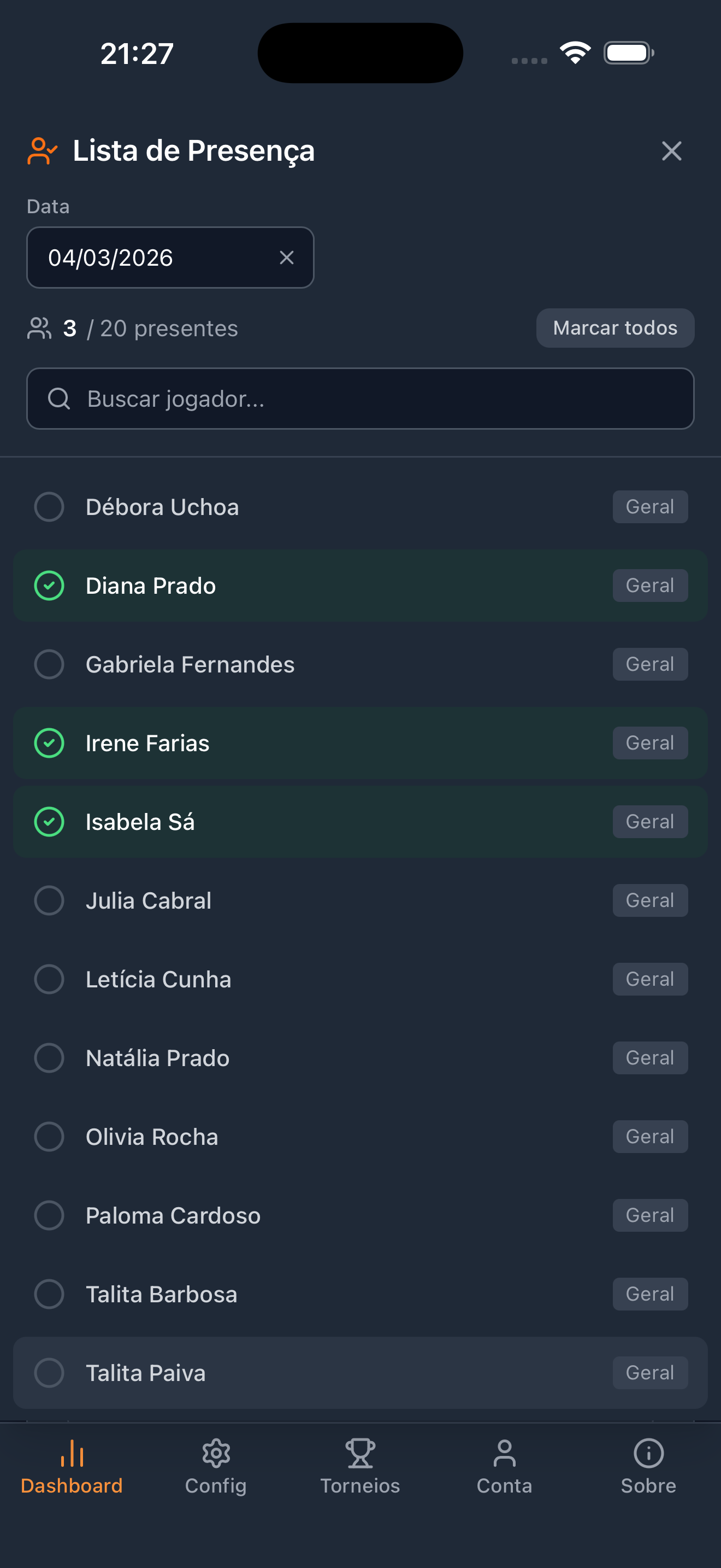 Ao formar grupos ou chaves, o app usa os participantes da lista de espera