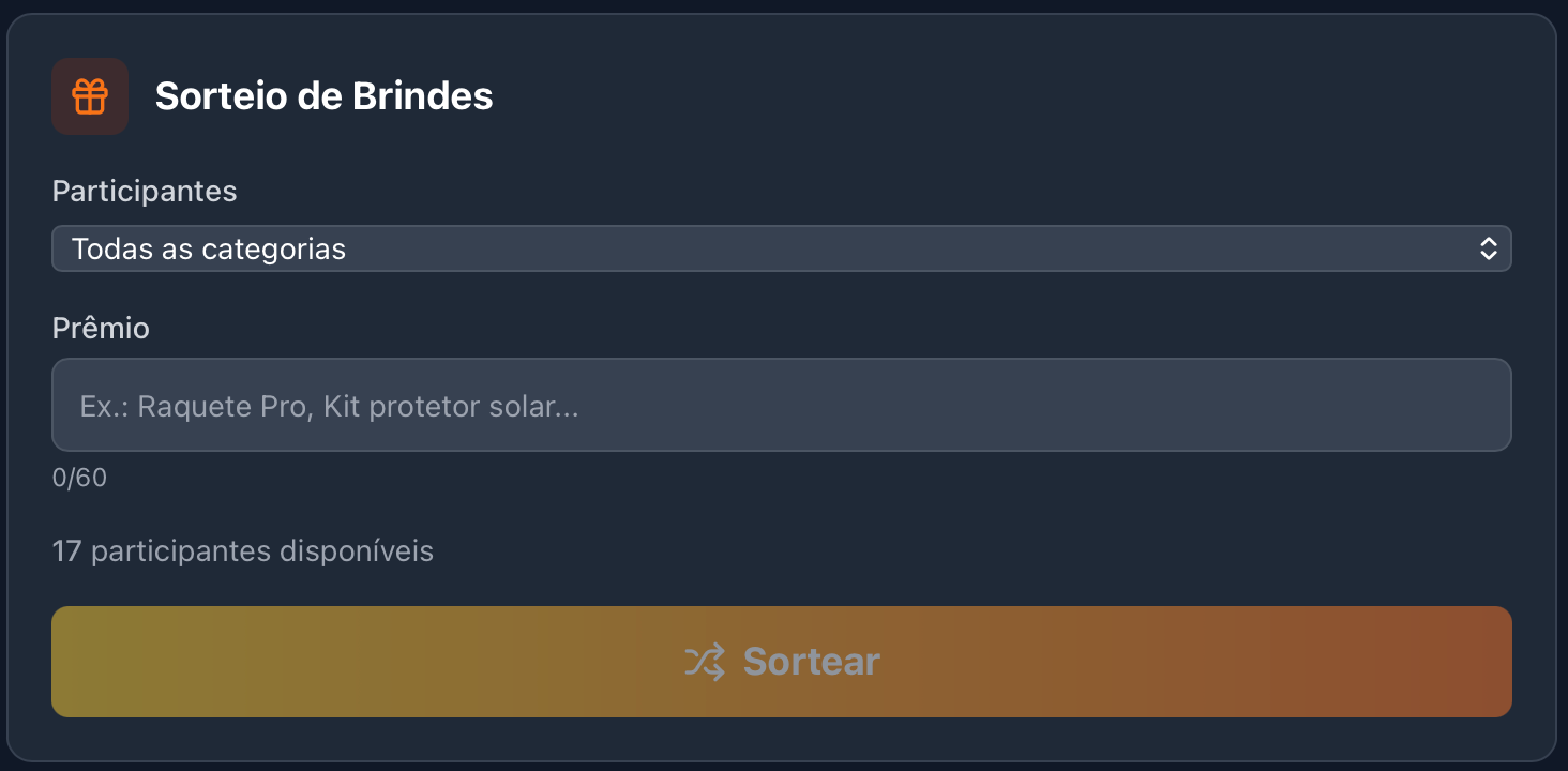 Sorteio de brindes — sorteie prêmios ao vivo com animação para telão